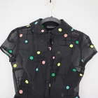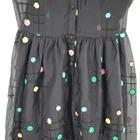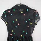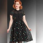 Voodoo Vixen 50s Style Dress Women XS Black Chiffon Polka Dot Pin Up Dance Twee Step back in time with this Voodoo Vixen dress, where polka dots party like it's 1959. This chiffon number is a whimsical nod to retro charm, making you the belle of the ball—or at least the belle of the grocery aisle. • Short sleeves • Button front • Embroidered polka dots • Sheer overlay • Lined bodice Features: • Collared Neck • Semi Sheer • Attached built in slip • Fit & Flare • Embroidered Polka Dots • 50's, circle skirt, polka dot, colorful, dark feminine, pin up, chiffon, dance, event, night out, date, twee Size: Womens XS Approximate Measurements: Length from center back 39.5 in / 100 cm Bust, flat lay 16 in / 41 cm Sleeve from neckline 9 in / 23 cm Waist, flat lay 13.5 in / 34 cm Hips, flat lay 24 in / 61 cm Condition: Pre-Owned Like New Excellent pre-owned condition, see photos for details.