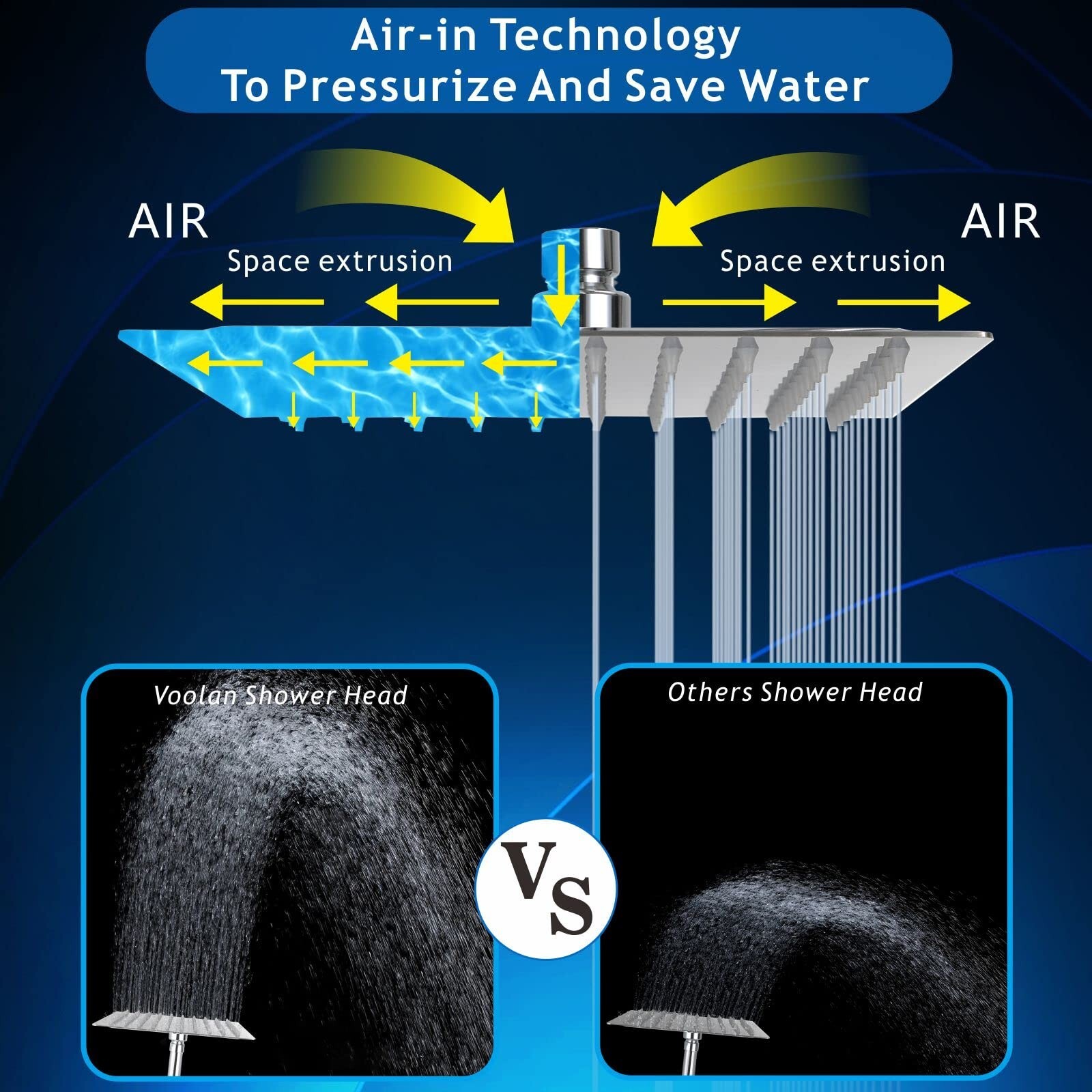 Voolan All Metal Shower Head with Extension Arm, Stainless Steel Waterfall Rainfall Showerheads, High Flow Bathroom Square Rain Shower Head (12’’ Shower Head with 16’’ Shower Arm, Brushed Nickel) Product Details Size: 12’’ Shower Head with 16’’ Shower Arm Color: Brushed Nickel Brand: Voolan MPN: VL-103-LSN1.8 UPC: Does not apply EAN: Does not apply Brand: Voolan Style: Modern Shape: Square Material: Stainless Steel Finish Type: Brushed Brand: Voolan Style: Modern Shape: Square Material: Stainless Steel Finish Type: Brushed Setting Type: Rain Installation Type: Wall Mounted Color: Brushed Nickel Product Dimensions: 12.01"L x 12.01"W Number of Jets: 1 Manufacturer: VoolanDirect Part Number: VL-103-LSN1.8 Item Weight: 4.16 pounds Item model number: VL-103-LSN1.8 Size: 12’’ Shower Head with 16’’ Shower Arm Finish: Brushed Flow Rate: 2.5 Gallons Per Minute Included Components: 16" Shower arm, Flange, Teflon Tape, Flow restrictor, 12" Square shower head Batteries Included?: No Batteries Required?: No Date First Available: October 2, 2023 HIGH PRESSURE WATER FLOW - Ultra-thin and air-in technology leads to strong and high pressure, just like full and dynamic massage to your skin. Never worry about the low water pressure in your home. Now remove those cheap shower heads and install Voolan shower head that always offer consistent POWERFUL rain shower. 16 INCN SHOWER EXTENSION ARM WITH FLANGE - Made of thickened metal stainless steel. The wall-mounted extender can excellent make the 12 inch Rainfall Shower Head fixed. This creates a spacious and comfortable shower environment for tall people, providing an awesome rain shower experience. LARGE SQUARE SHOWER HEAD - Made of High quality 100% 304 Solid stainless steel that ensures longevity and sturdiness. It also is sure to complement your bathroom colors and decor settings. No damage, leakage, loose sagging. Premium material bring this shower head a luxurious appearance. INSTALL IN MINUTES - Installation is a breeze with this shower head, which fits all standard G1/2" pipe threads. Simply unscrew the old shower arm from the wall, install the shower arm with Teflon, and fix the rainwater shower head. No handyman required! SELF-CLEANING SILICONE NOZZLES - Self-cleaning soft silicone nozzles with a design of 144 silicone nozzles that bring a high flow shower. The food-grade silicone used for the nozzles allows you to easily wipe away calcium and lime build-up, ensuring your safety and health when you enjoy bathing.