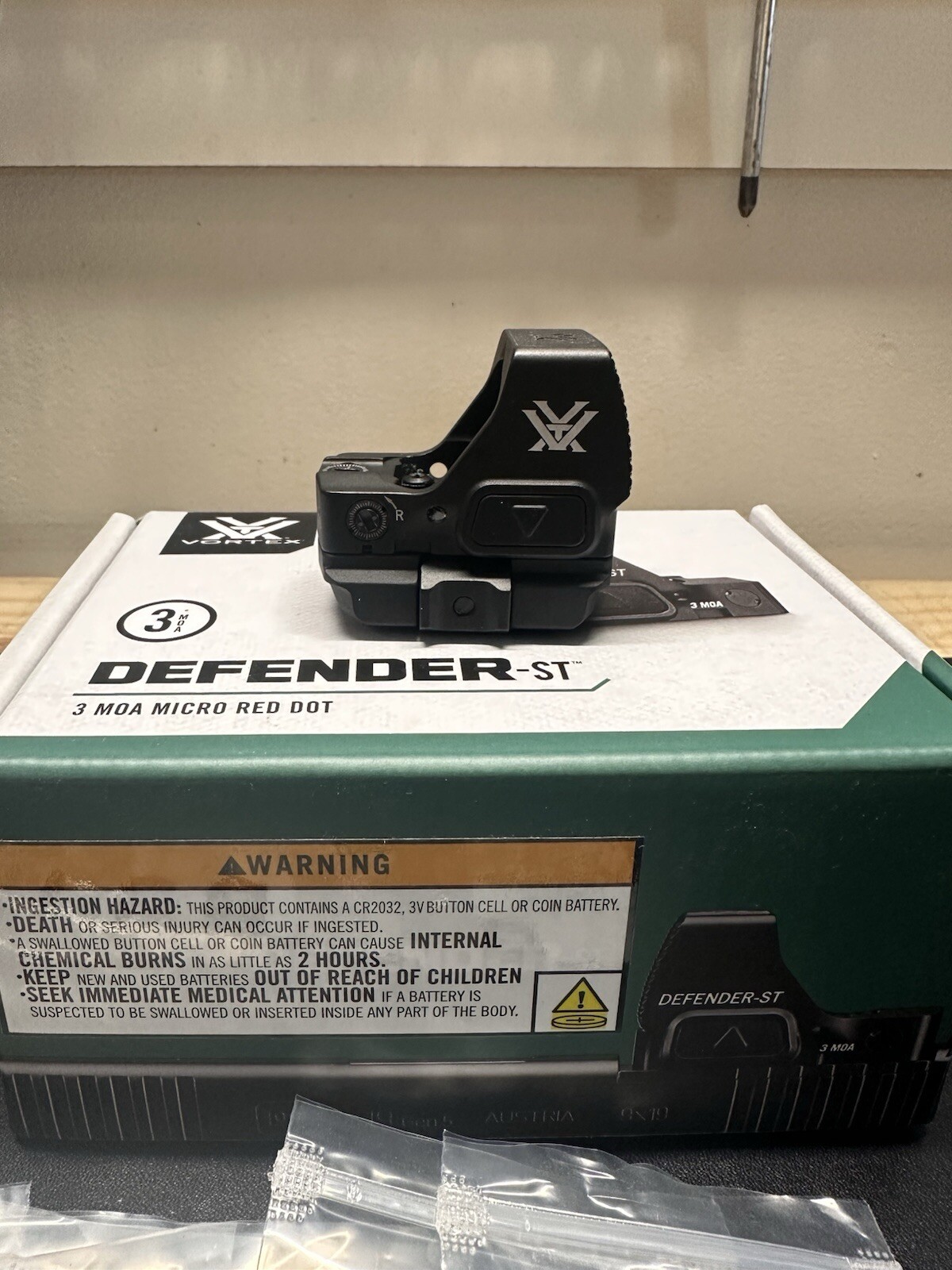 Vortex Defender ST red Dot 3MOA Only took out box to test function. Please view images for condition! Comes with everything in box!