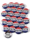 Are you registered to Vote? Vibrant Colors Each button/badge is 1.5 Inch in diameter. (About the size of a milk cap) 25 Buttons in each package High Quality Pinback Buttons Vote Election Activism Pinback Buttons - 1.5 Inch Round - 25 Pack. Perfect for political rallies, elections, conventions, protests, town halls, community outreach, any any other occasion to help motivate people to vote! This is being sold as a pack of 25. So if you order a quantity of 1 you will get 25.