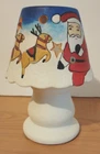 Santa & Reindeers Votive Candle Holder Great Condition 2 Piece 5.75" Tall Approx. Clay Bisque Matte Finish Star Cut Outs On Top Use With Led or Wax Votive Candles *Not Included Really Cute As Seen In Photos From A Smoke Free Home