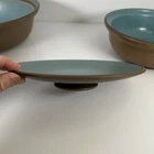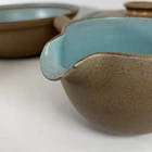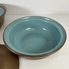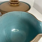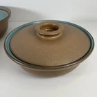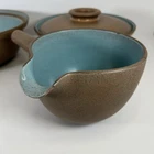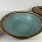 Heath Ceramics Coupe Line Pottery MCM 1950s Serving Dishes Aqua Chocolate Brown Glazed Set of 4 Pieces + Lid **SEE FLAWS LISTED BELOW** - Medium Covered Serving Dish - Pouring Bowl (cracked, chip on spout, no leather strap) - Large Serving Bowl (chips, scratches/marks) - Large Deep Stripe Serving Bowl (chips, scratches/marks) Good overall condition except for 1 crack, some chips and marks/scratches as pictured and listed above. Sold "AS IS". Fast Shipper. Please be aware that US buyers are responsible for any customs duties, import taxes and fees that may be applicable to this item, as these are not included in the purchase price or shipping cost, and are the responsibility of the buyer to pay.