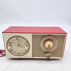 This is a very rare late 1950s into the 1960s General Electric clock and radio. We did test it, and it does work! We were able to find two radio channels. Once plugged in, the clock likes to make a humming sound and vibrates a little. Also, once plugged in, the second timer hand on the clock will move. We are selling this as is. It may have some dust that needs cleaned off. Please see photos for consideration. If you have any additional questions or concerns, please reach out to us prior to payment. We do offer combined shipping, so please check out our rare clocks.
