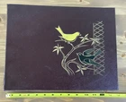 Vintage scrapbook from the 1960s has burgundy faux leather cover with bird design on the front. Pre-owned: has handwritten message inside front cover, photo corners and/or handwriting on 16 pages, and 2 old photos. There are 21 unused pages. This is a 2-post album, pages can be removed if desired. Cover measures 13 1/2" x 10 1/4", pages are 13" x 10". The pictures show the actual item that you will receive. Ships from Alberta, Canada. Tax applies to purchases.