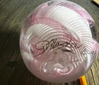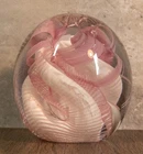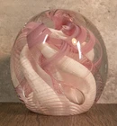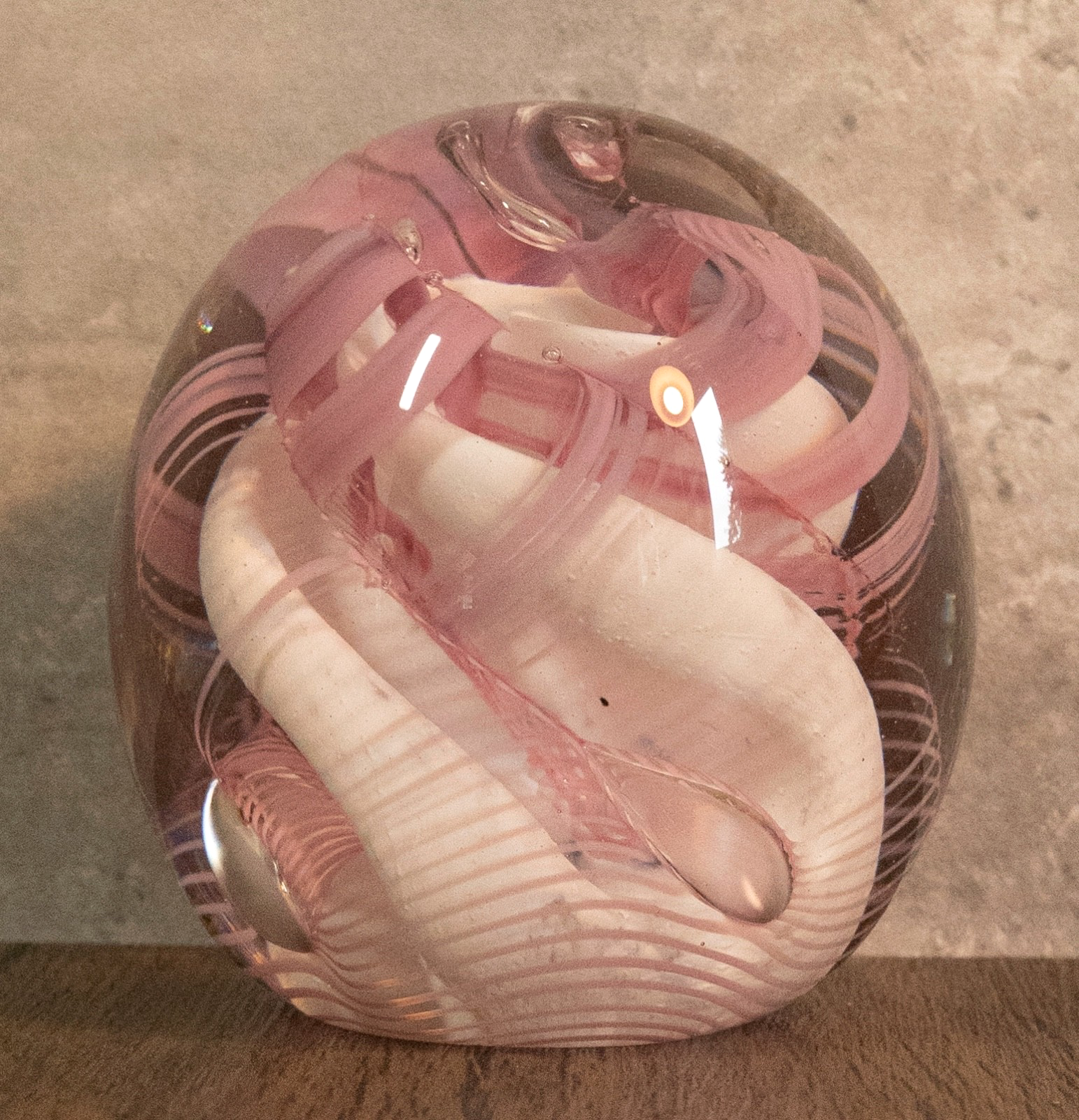 Vtg 1986 Gibson Glass Pink White Free Form Lace Controlled Bubble Paperweight