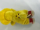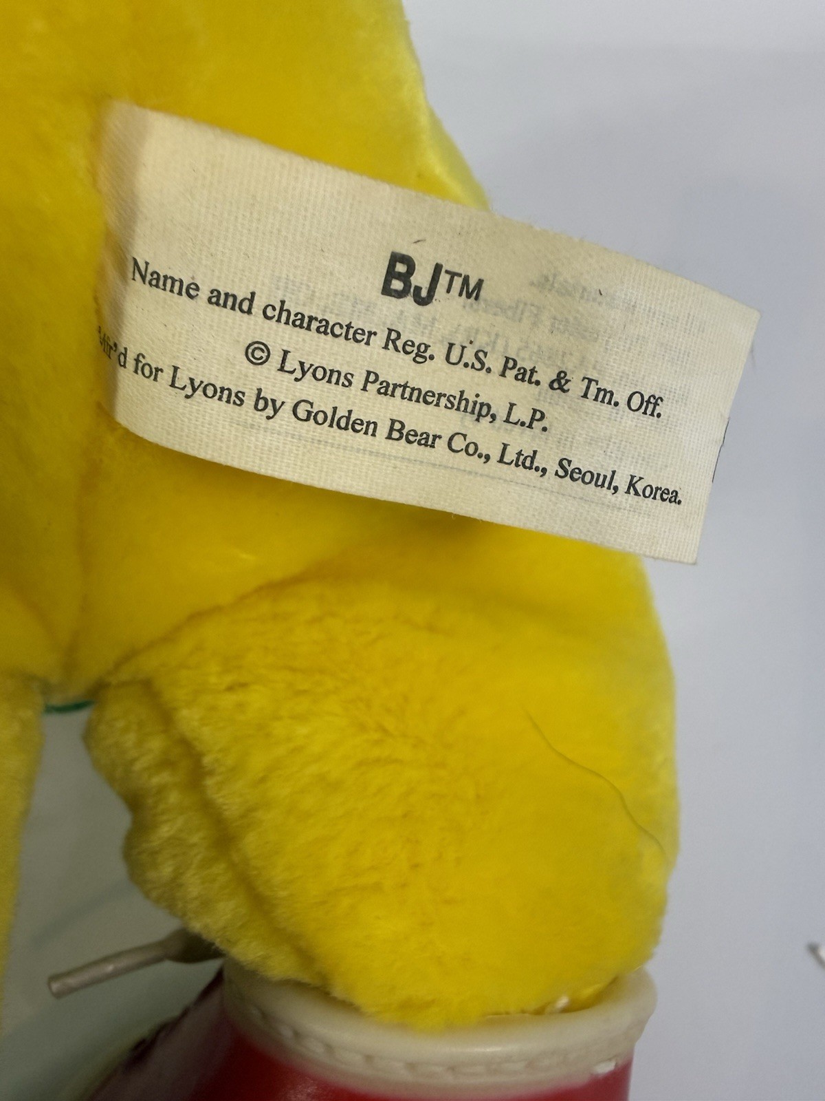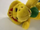 This vintage 1994 12" Barney BJ Yellow Dinosaur stuffed plush figure doll by The Lyons Group is a collectible toy based on the popular children's show "Barney & Friends." Made in South Korea, this small-sized plush doll features the lovable character BJ from the show. With its nostalgic appeal and retro aesthetics, this stuffed animal is sure to be a beloved addition to any vintage toy collection.