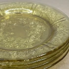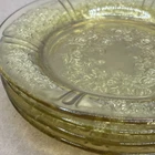 Vtg 4 Pc Federal Depression Glass Sharon Cabbage Rose Amber 6" Dessert Plates. Condition is Used. Shipped with USPS Ground Advantage.