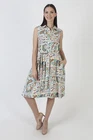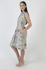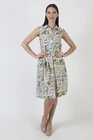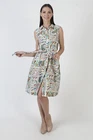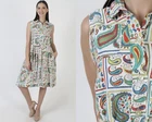 This is a super cute vintage 60s party dress. It features a tailored bodice with high waist and tank design. The dress has a tiny collar neckline and mid length full skirt with pockets. Made of white cotton material. The buttons up the front and is unlined. Sold in great, pre-owned vintage condition. Review detailed measurements below for an accurate fit. size estimate: S/M shoulders: - bust: 39" waist: - hips: 52" total length: 39" Model is 5'9" and measures 32" bust, 25" waist, 34" hips. Belts/accessories are not included unless noted in the description