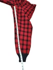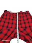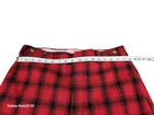 This vintage 60s Woolrich hunting pants are made for men in size 34. The pants feature a red buffalo plaid pattern and are made of thick wool material for durability and warmth during winter, fall, and spring seasons. They have a flat front with a zipper closure, button accents, and zipper pockets for a classic look. These pants also have a skinny leg style with a 30-inch inseam and come with cuffs for added style. The Woolrich brand emphasizes the American theme and heritage, making these pants a stylish and practical choice for travel, casual wear, or workwear.