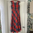 This 70’s dress stole my heart. So perfect for fall and winter. Tartan plaid with empire waist and midi length. Perfect with boots! Measures: Underarm: 16” Shoulder: 15.25” Length: 57” Empire: 13.75”