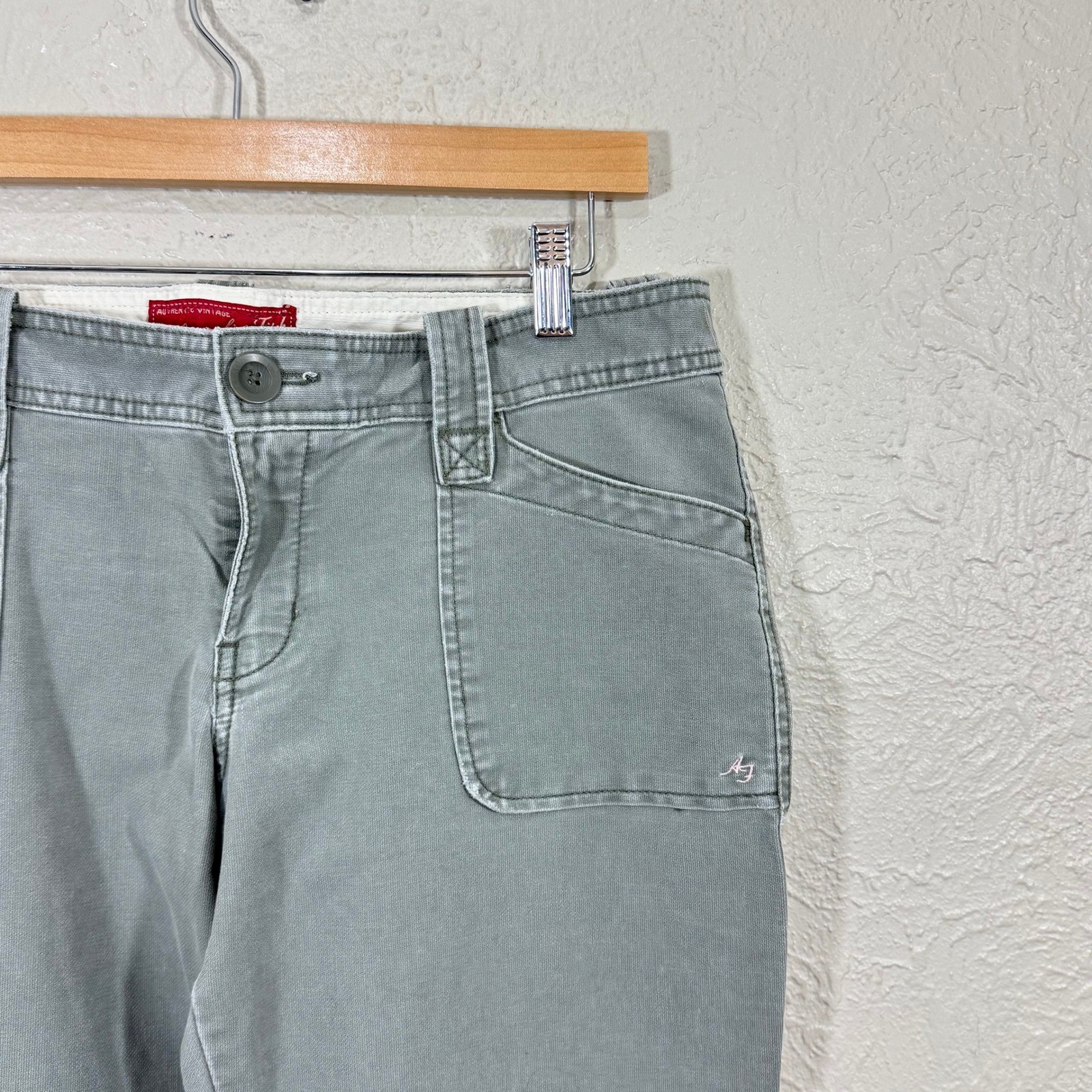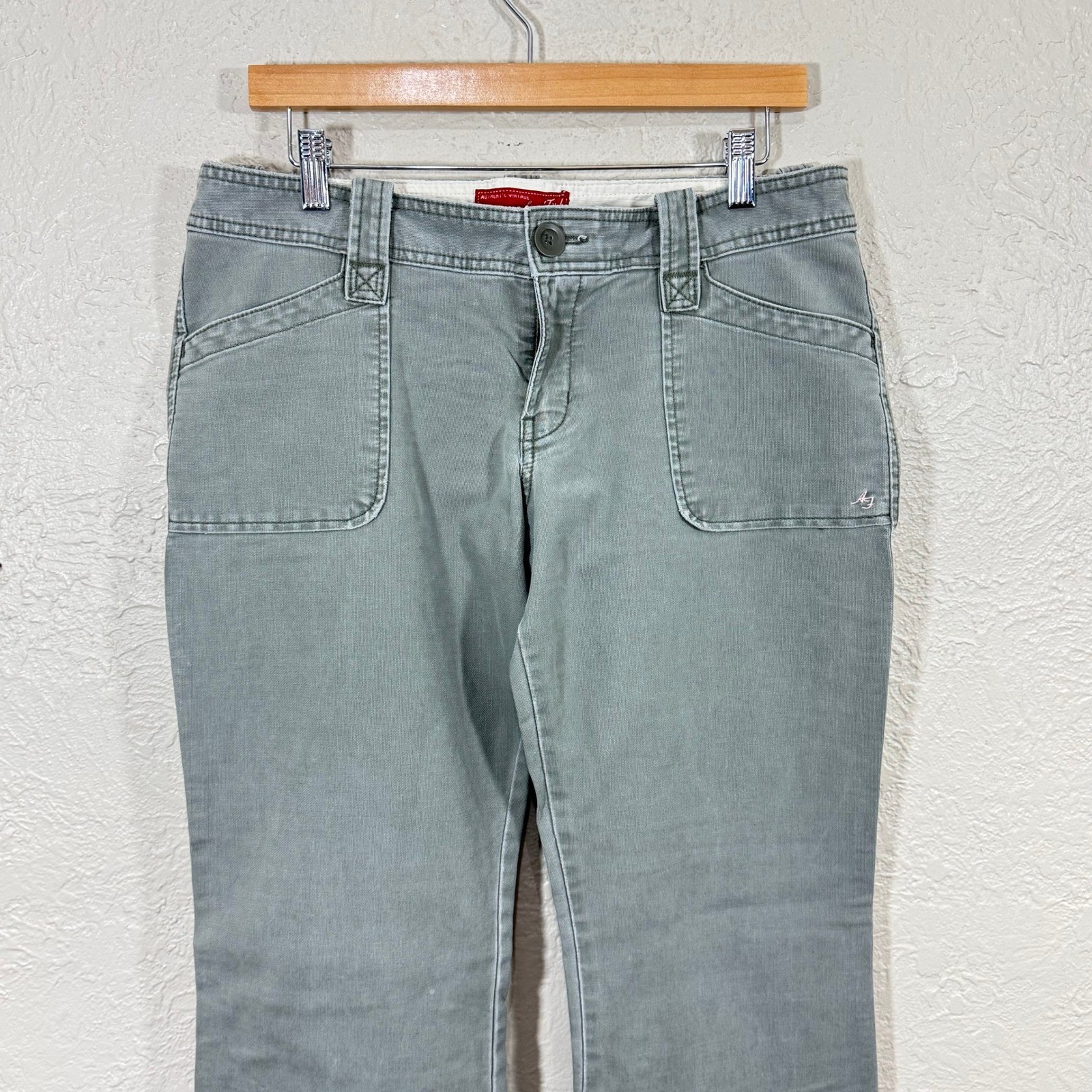 Vtg 90s Abercrombie & Fitch Flare Pants 10 Baggy Low Rise Y2K 100% Cotton Street Brand: Abercrombie & Fitch Size: Women's 10 Color: Sage green with a gray undertone Color #: 33 Features: Low-rise, flare leg, utility-style front pockets, back flap pockets, logo embroidery, vintage item from the 1990's Material: 100% cotton Country of Origin: Made in Sri Lanka Style Number: 42119 Condition: There's a small hole that's only seen when the flap of the back pocket is lifted. There's also a faint stain on the left heel that may come out with treatment. Minor heel drag on the left leg. All purchases are shipped within one business day of purchase. Free returns are accepted for any reason within 30 days of purchase. Keywords: Y2K, utility, casual, boho, normcore, outdoorsy, minimalist, everyday, vintage, 90s, grunge, festival, streetwear