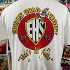 Vintage 90s white short sleeve single stitch class of 95 EHS Edison High School Grad Night That's All Folks Bugs Bunny crewneck graphic t-shirt by Hanes Heavyweight. Has a couple small spots {see images}. Made of 50% polyester and 50% cotton in the U.S.A. Tagged a size large. measurements: chest -- 42.5" total length -- 25"