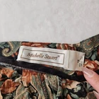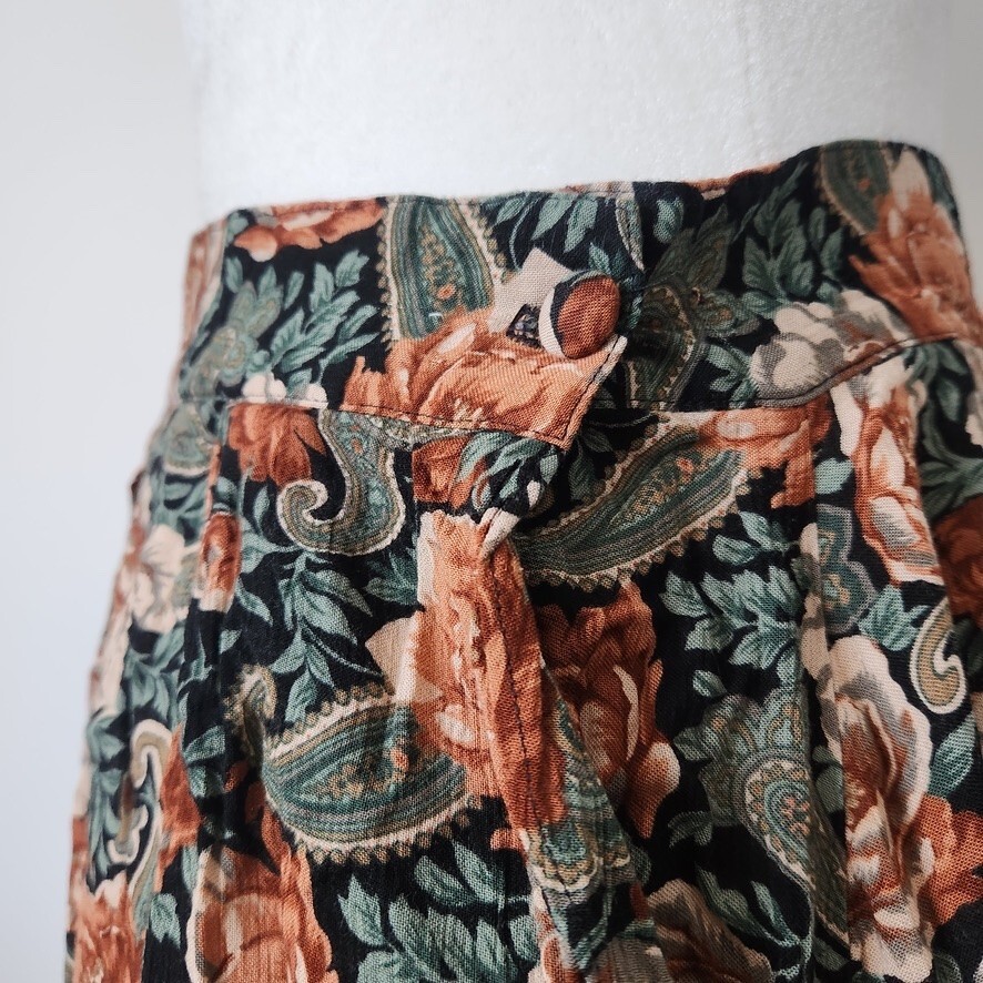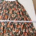 Vtg 90s Floral Maxi Skirt Sz 12 Boho Black Multi Whimsigoth Cottagecore Paisley Vintage floral maxi skirt by Michelle Stuart in women's size 12. - Whimisical floral + paisley pattern in black, dark green, and orange - Flowy A-line silhouette and maxi length - Fabric button closure on side - No material tag, feels like a rayon/cotton blend - From the 90s. Minor wear, overall good vintage condition! Perfect for whimsigoth, cottagecore, boho, or dark fairy aesthetics! lay flat measurements: waist: 13.5" • hips: 29" • length: 30.5" made in USA