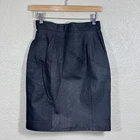 Otello Pelle Black Leather Skirt 9/10 High Waist Minimalist Classic Street Goth Brand: Otello Pelle Size: Women's size 9/10 Color: Black Features: Back zip closure, paneled construction, high waist, knee length Material: Shell: 100% Leather, Lining: 100% Acetate Country of Origin: Made in China Condition: Item is in very good vintage condition with no flaws. All purchases are shipped within one business day of purchase. Free returns are accepted for any reason within 30 days of purchase. Keywords: goth, minimalist, edgy, 90s, biker, classic, sleek, leathercore, street style, normcore