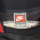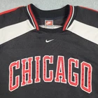 This vintage 90s Nike Chicago Bulls NBA warm-up jersey T-shirt features a classic design with the team's logo and Michael Jordan's name. The shirt is officially licensed by the NBA and made in Singapore. It's perfect for basketball fans who want to show their support for the Chicago Bulls during the regular season. The shirt is size L and black in color. Whether you're a collector or just a fan, this shirt is a must-have addition to your sports memorabilia collection.