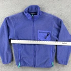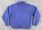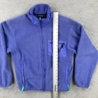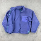 This vintage Patagonia jacket for women features a solid purple color with embroidered accents. Made in the USA in the 90s, it boasts a mid-length fleece style with a full zipper closure. Ideal for outdoor activities, it is lightweight and has pockets for convenience. The jacket is a size large and showcases the brand's logo, offering a versatile option for various occasions. No holes or stains See pictures for pictured measurements compare with your favorite garment and ask questions if you have any Add to your collection today Browse my other items I can combine shipping