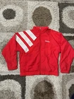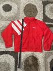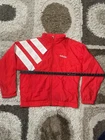 This vintage Adidas jacket from the Y2K era is a must-have for any 90s hip hop or sports enthusiast. The red windbreaker features the iconic Trefoil stripe and embroidered logo, adding a touch of retro style to your outfit. Made from durable nylon material and lined with polyester, this jacket is perfect for outdoor activities such as running, soccer, and gym training. The jacket is hooded and has a full zip closure, making it easy to put on and take off. It also has zipped pockets for your convenience. Lightweight and water-resistant, this Adidas Originals windbreaker is a versatile addition to your wardrobe that can keep you warm and dry on a chilly day.