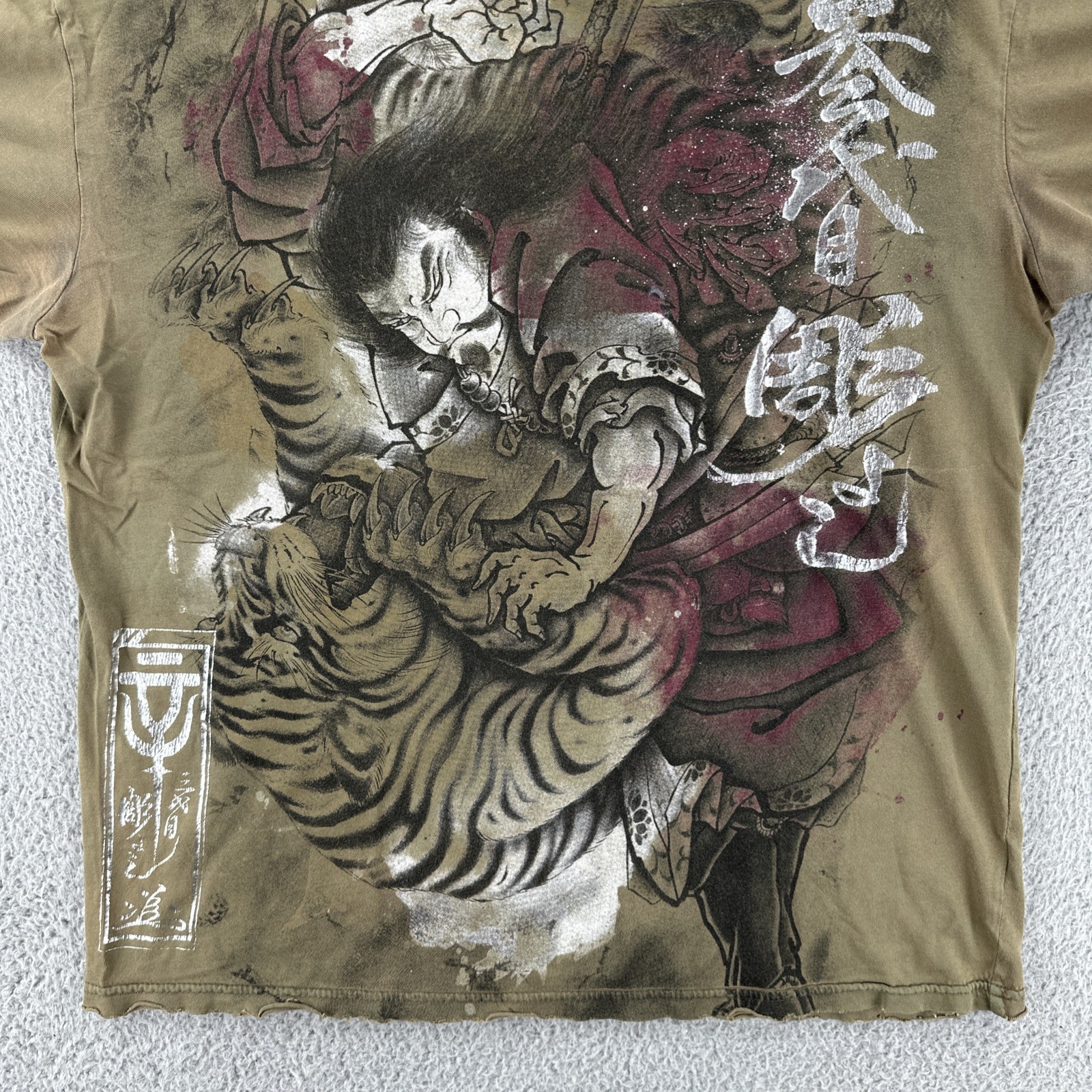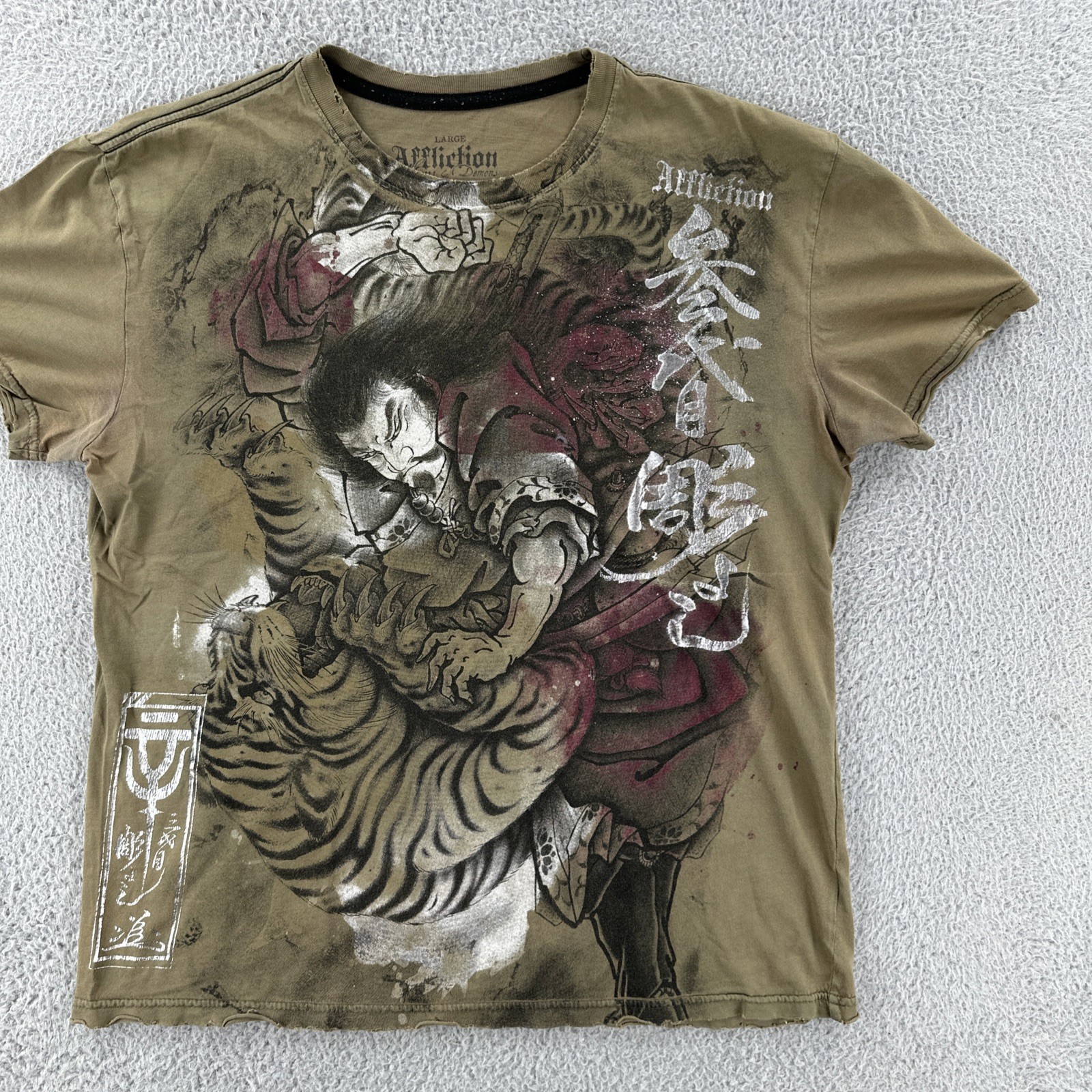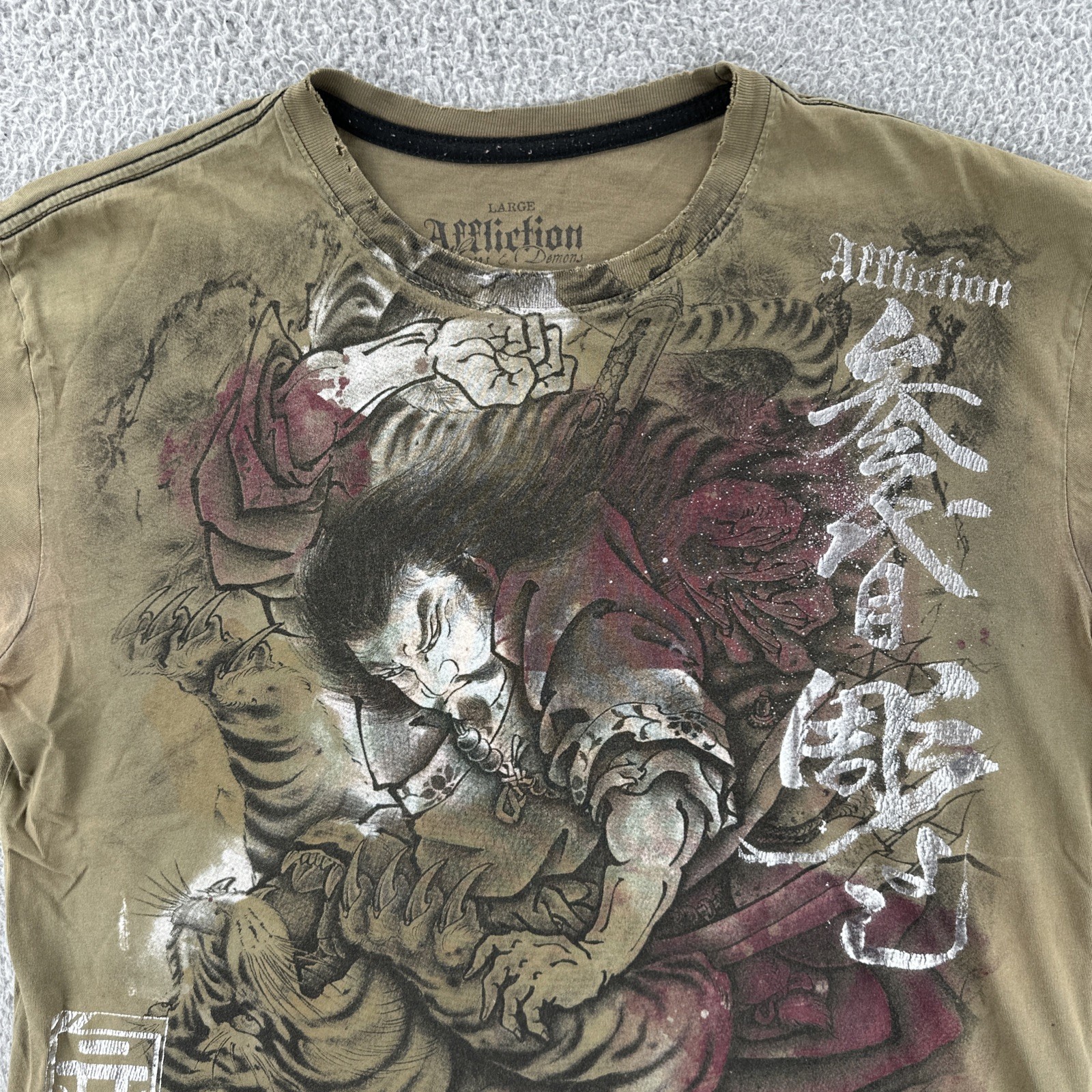 Vtg Affliction Heroes & Demons By Horiyoshi III Mens Large Gray AOP Y2K Shirt