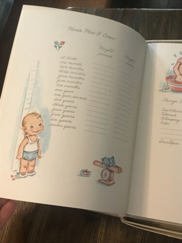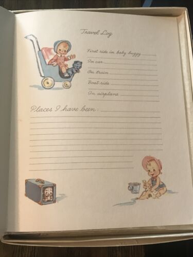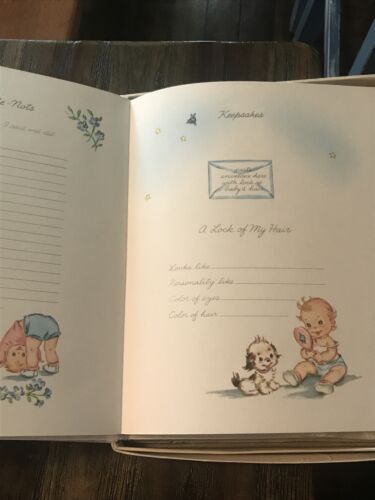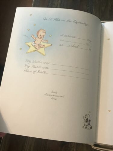 Vtg All About Me Baby Book White Cover Blue Lettering Puppy NOS Gibson Norwalk. Shipped with USPS Parcel Select Ground. Good clean unused condition. Discoloration inside front and back covers. Does have a light musty smell. Will be airing out until sold. Please see pictures for details.