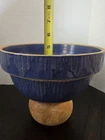 This vintage 1910 Ruckles Pottery blue stoneware picket fence mixing bowl is a unique and charming piece of American pottery. The round bowl features a post-war design with a picket fence pattern, making it a decorative and functional addition to any kitchen or dining table. Crafted in the United States with a salt glaze finish, this original art pottery piece from Clay City Pottery is a true antique treasure from the early 1900s.