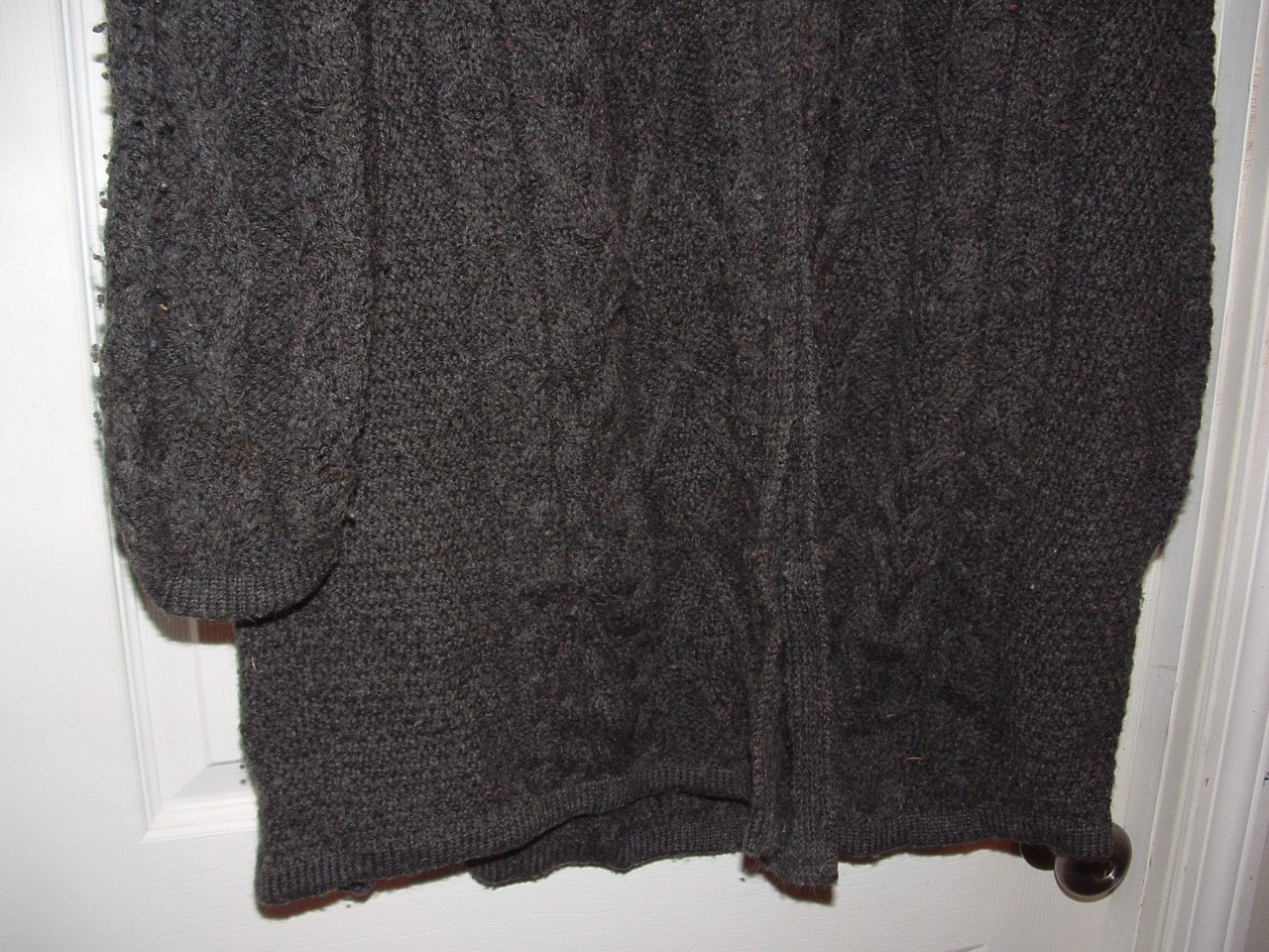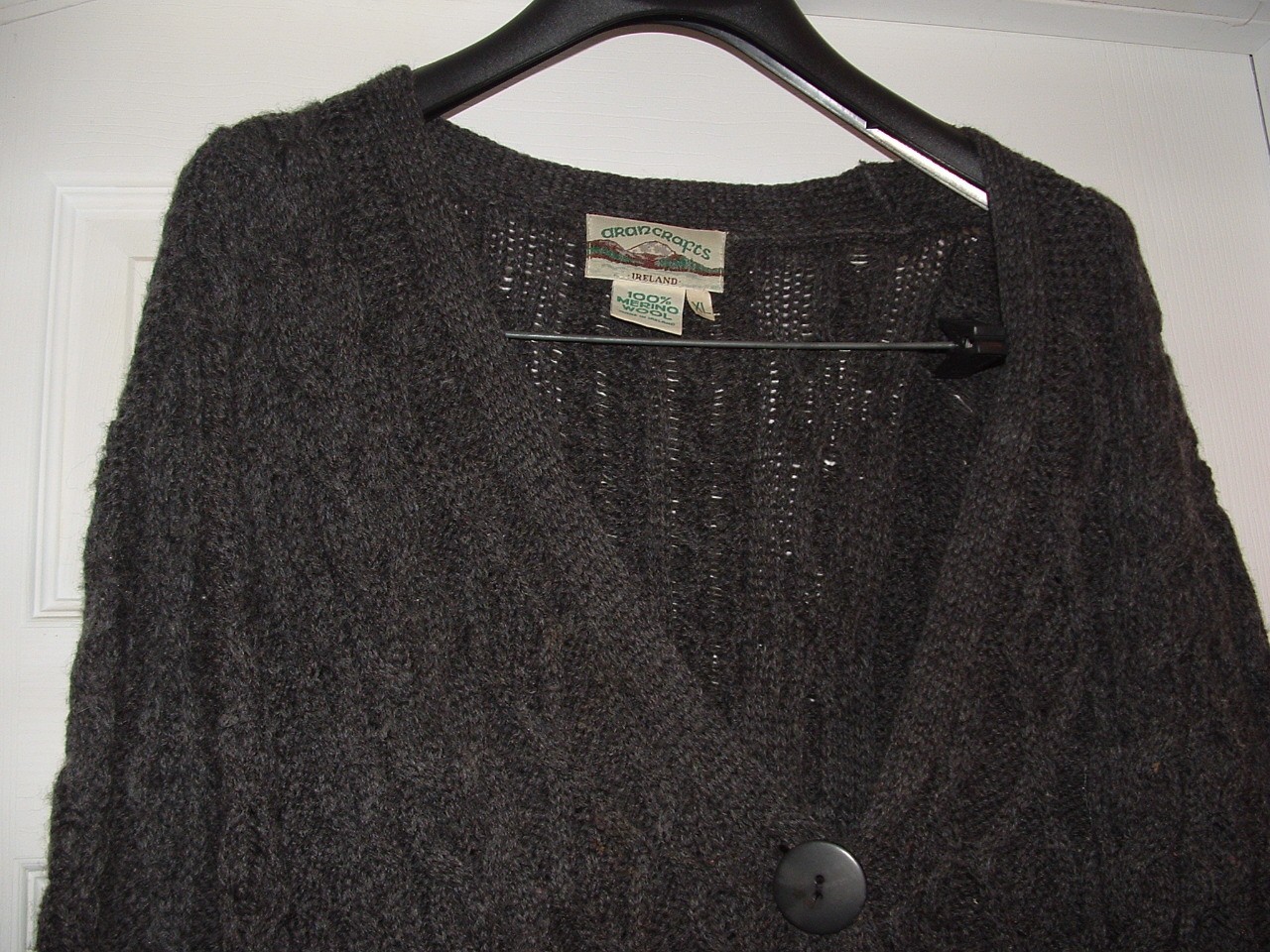 Well loved vintage Aran Crafts Merino Wool Cable Knit Cardigan in XL size and Charcoal color is a classic and stylish piece perfect for various occasions. Made from wool and featuring a V-neckline, long sleeves, and button accents, this cardigan is both comfortable and trendy. The cable-knit design adds a touch of texture and warmth, while the fisherman character and Irish craftsmanship give it a unique and authentic appeal. Perfect for the winter, fall, and spring seasons, this cardigan is a versatile and timeless addition to any wardrobe. Used, but good condition with no holes, tears or stains. Some pilling from use, as shown, and priced accordingly.