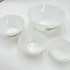 Add a touch of vintage charm to your dining table with this four-piece nesting bowl set from Arcopal France. The round bowls feature a delightful partridge bird pattern in multicolor and are made of high-quality milk glass. The set includes four bowls with a diameter of 9 inches, perfect for serving salads, fruits, or desserts. This mid-century modern style bowl set is an original piece from the 1960s and is perfect for all occasions. The set is easy to clean and maintain, and it is recommended to hand wash only. This Arcopal France bowl set is a great addition to any vintage dinnerware collection and is sure to impress your guests. CONDITON: No chips, cracks, damage. No dish washer damage. Has some very light scuffing due to previous usage. ****SHIPS NEXT BUSINESS DAY****