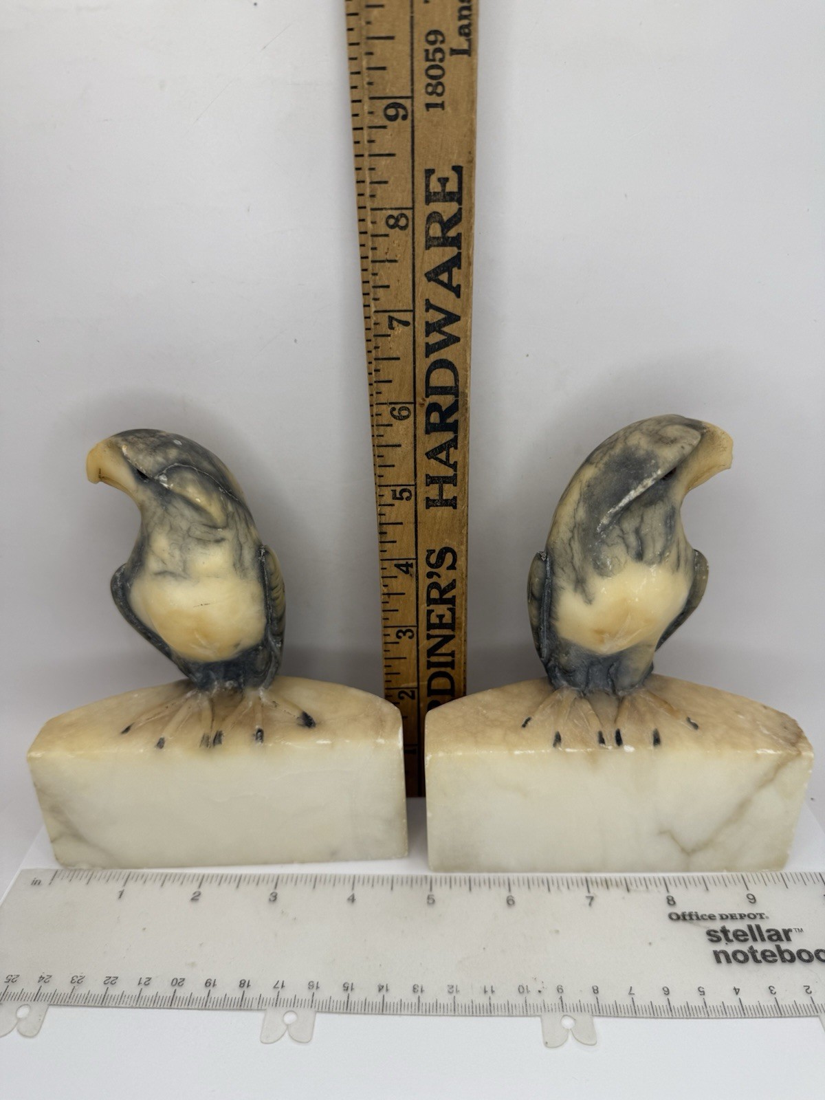 Great look! Chip on beak on one bird(see last photo), otherwise in good/very good vintage condition with expected wear(see photos). Found no cracks, does have some small edge wear/small chips, and has some imperfections in finish and some marks, bumps and little bruises (see photos, all sides pictured) . Looks like they have glass eyes. Found no Marker's Marks. Only given a light cleaning. Might be small things that were missed so please see all photos. Contact if still questions. ****Pictures very much part of condition assessment, please be sure to view all photos.**** All items sold as-is. Packed with great care. International Shipping only through eBay's Shipping, so no Combined Shipping and will have additional costs associated. Thank you for looking!