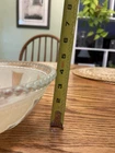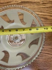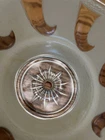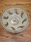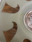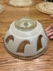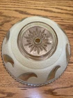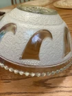 The shade is in good shape. It does have a very small chip on the single hole where it mounts, shown in the photo. The shade has very little sign of much use, only has a few nicks of paint, shown in photos. It is a single hole mount.