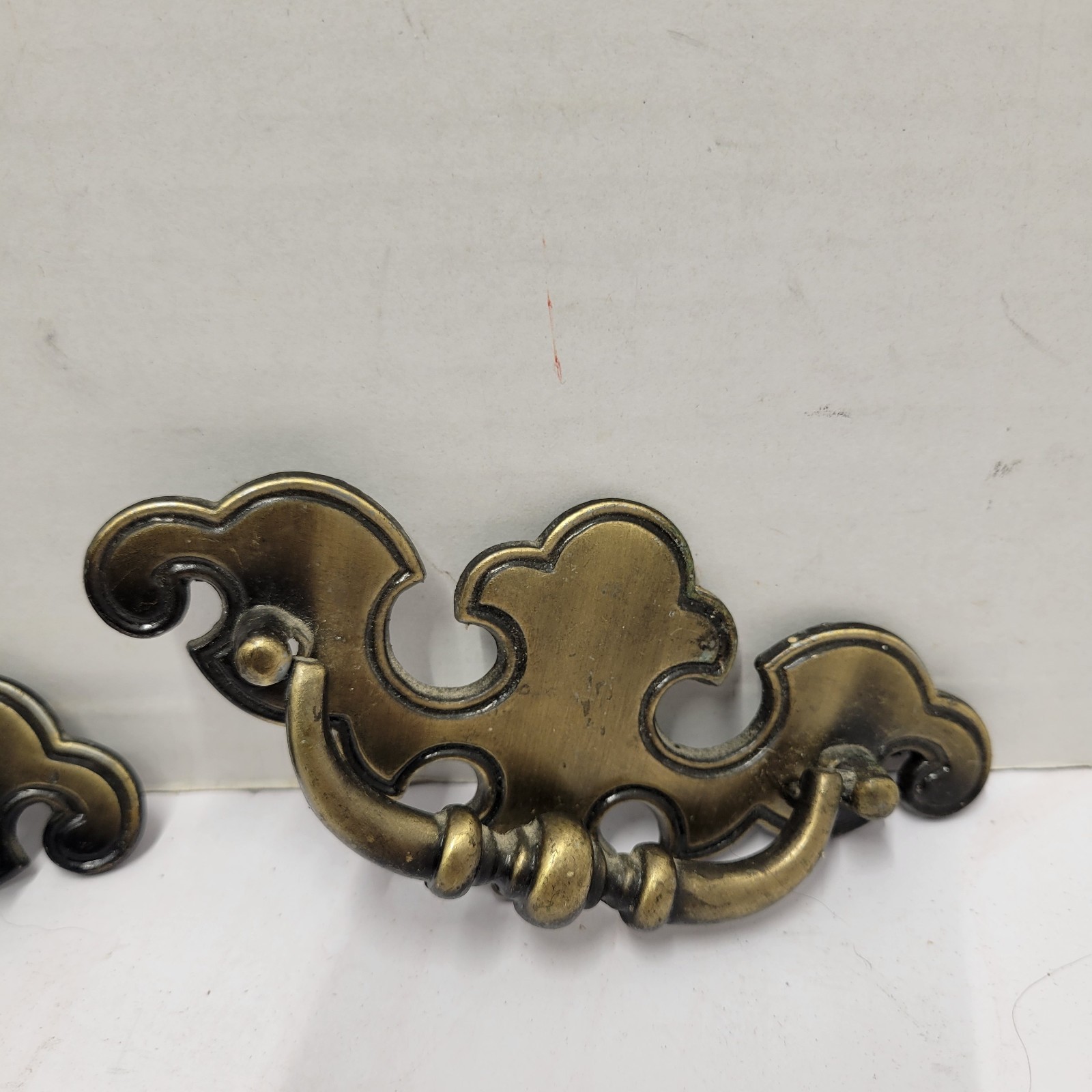 NOS (8) Chippendale Batswing Drawer Pulls w/ Posts and Bails Med. Antq. Finish