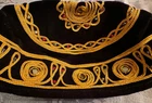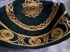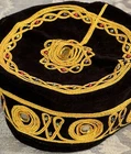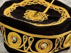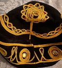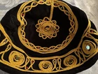Add a touch of elegance to your wardrobe with this vintage Bukhara Uzbek embroidered metallic skull cap kippah yarmulke. The black velvet fabric and intricate beadwork make it a perfect accessory for any occasion, whether it be a wedding, party, or formal event. The cap is designed with embroidered metallic thread and beads, adding a unique touch to your outfit. This skull cap is a perfect fit for men or women and can be worn in any season, whether it be winter, summer, fall, or spring. The vintage style of this cap makes it a great addition to your wardrobe, and its velvet fabric and intricate beadwork make it a standout piece. Buy this black velvet skull cap now and add a touch of elegance to your wardrobe.