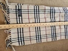 This vintage Burberry cashmere scarf is a timeless piece that will elevate any outfit. The classic check pattern in beige adds a touch of sophistication to your look. Measuring 54x11.5 inches, it is the perfect size to drape over your shoulders or wrap around your neck. The high-quality cashmere material ensures that it is soft and cozy to the touch, making it a must-have accessory for chilly days. This scarf is a rare find and a true gem for any fashion enthusiast.
