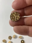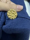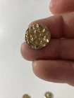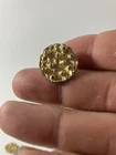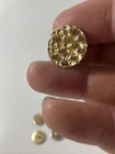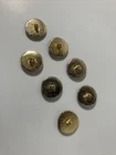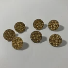 Up for sale is a vintage gold tone shank button, shaped round and made of metal. This button is a replacement from a Burberry Scotland wool sweater and is suitable for any sewing project. It has a unique style and color that will enhance the overall look of your creation. This button is an original vintage piece and is one of seven available for purchase. It is perfect for collectors and sewing enthusiasts alike who are looking for a high-quality and unique button to add to their collection. Don't miss out on this opportunity to own a piece of Burberry history. Pictures show conditions and measurements of all though one will be picked at random and shipped. If questions please ask prior to bidding and thanks for your interest. Bling-125…3oz…post ** I have included a few pictures of the garment these came off from for reference only not included.. It was damaged to badly for resale. **