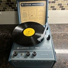 This vintage California 1410k solid state phonograph is awesome!! From what I can tell this unit works exactly as it should. It has the LP and 78 stylus and switches between them as it should. I could only test it at 33 and 45 rpm as those are the only albums I have, but both played as they should without issue, the light on the cartridge still works and allows for easy lineup on album. Cord is in good shape, power knob works as it should, volume works as it should, although it could probably use some deoxit to get rid of the minor static it has here and there, tone knob also works exactly as it should. The case latches for portability just as it should and the cord stows away in the side of the case added convenience. The Roman numeral four or IV is written on the table and the lid which I assume has something to do with the outer cover saying 3rd grade. This minor writing would probably clean right off, but I did not attempt to do so as I am selling in the exact condition I received it. Any questions feel free to ask prior to bidding, and I will answer as quickly and honestly as possible Thanks for looking. Good luck and happy bidding!