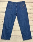 This pair of Carhartt jeans is a vintage gem for men who appreciate high-quality and classic outdoor wear. The jeans are made in the USA, with a denim fabric type and a medium wash that gives them a unique and timeless look. They feature a 5-pocket design with a zip and button closure, and a high rise of greater than 12 inches for added comfort. The jeans are lined with fleece and have a breathable fabric wash, making them perfect for winter, fall, and spring seasons. They are easy to care for and machine washable, ensuring that they will last for years to come. The Carhartt brand is known for its durable and functional clothing, making these jeans ideal for outdoor activities, hiking, or even workwear. See pictures for condition and measurements for size.