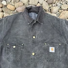Vintage Carhartt XL Black Blanket-Lined Chore Jacket with Corduroy Collar