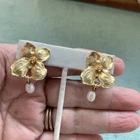 Vtg Celia Landman Pansy Fresh Water Pearl Art Nouveau Style Bracelet & Earrings. Bracelet 7 3/4” long Clip-on earrings 1 1/4” long Very good gently used condition. Minor wear to gold finish. Please see all photos as part of the description. Thank you!