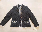 This vintage Charter Club jacket is a must-have for any fashion-forward woman. With its quilted design and button collar, it's perfect for the holidays or any special occasion. Made from high-quality polyester, this jacket is both comfortable and stylish. It's a great addition to any wardrobe, and its black color is sure to complement any outfit. This jacket is a true gem, and it's sure to turn heads wherever you go. Smoke free