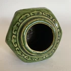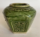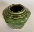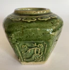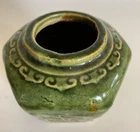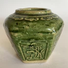Ginger Jar Please check out all of the pictures This offering is for a vintage handmade Chinese Shiwan pottery ginger jar. Hexagon shaped with figural scenes on each side. Green glaze over clay pottery. This piece measures 4 inches wide the flat side to flat side and 4.5 inches wide corner to corner. Stands 3.75 inches tall. Comes from a smoke free home. Please read condition comments above and review all of the images provided. All items are to be considered pre-owned unless noted otherwise. NOTE: International Buyers - The shipping cost does not include any taxes or tariffs that your country may impose. That may appear as a separate fee on your checkout screen. NOTE: All pictures have been taken in outdoor natural light whenever possible. If you would like additional photos, please let me know and allow me 24hrs to respond. NOTE: Returns are accepted, and I will cover return shipping in the event the item was misrepresented or had concealed damage. If a change of heart is applicable return shipping and original shipping will not be refunded. Please notify prior to returning an item - Thanks! NOTE: I most certainly can combine items into one shipment - exceptions would be for oversized items. Please inquire with items and I will give you an actual shipping cost.