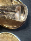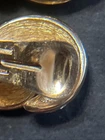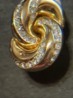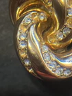 The Christian Dior Clip-On Earrings are a vintage accessory from the 1980s, featuring a classic huggie style with yellow gold plating and rhinestones. Signed by Dior, these earrings are perfect for a special occasion like an anniversary, adding a touch of beauty and elegance to any outfit. Made with high-quality materials and a secure clip-on closure, these earrings are a timeless piece that showcases the brand's signature style.stones are missing from it ,please look at the photos carefully. Thank you