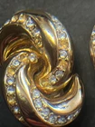 VTG Christian Dior gold blue topaz rhinestone clip-on earrings