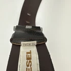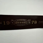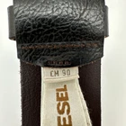 Elevate your style with this vintage Diesel belt, crafted from high-quality Italian leather. The distressed strap adds a touch of class to any outfit, while the adjustable buckle ensures a comfortable fit. This unisex belt is perfect for both casual and work wear, and the solid pattern and brown color make it a versatile addition to your wardrobe. The 1.7" width and cow leather material make this belt a durable and reliable choice. Handmade in Italy, this belt features a distressed Italian leather strap and is suitable for regular-sized adults. The timeless design and quality theme make this belt a must-have for any fashion-conscious individual.