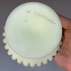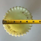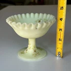 Vtg Fenton Compote Custard Glass Ruffled Satin Uranium Signed Hand Painted Daisy. Condition is Used. Shipped with USPS Ground Advantage.