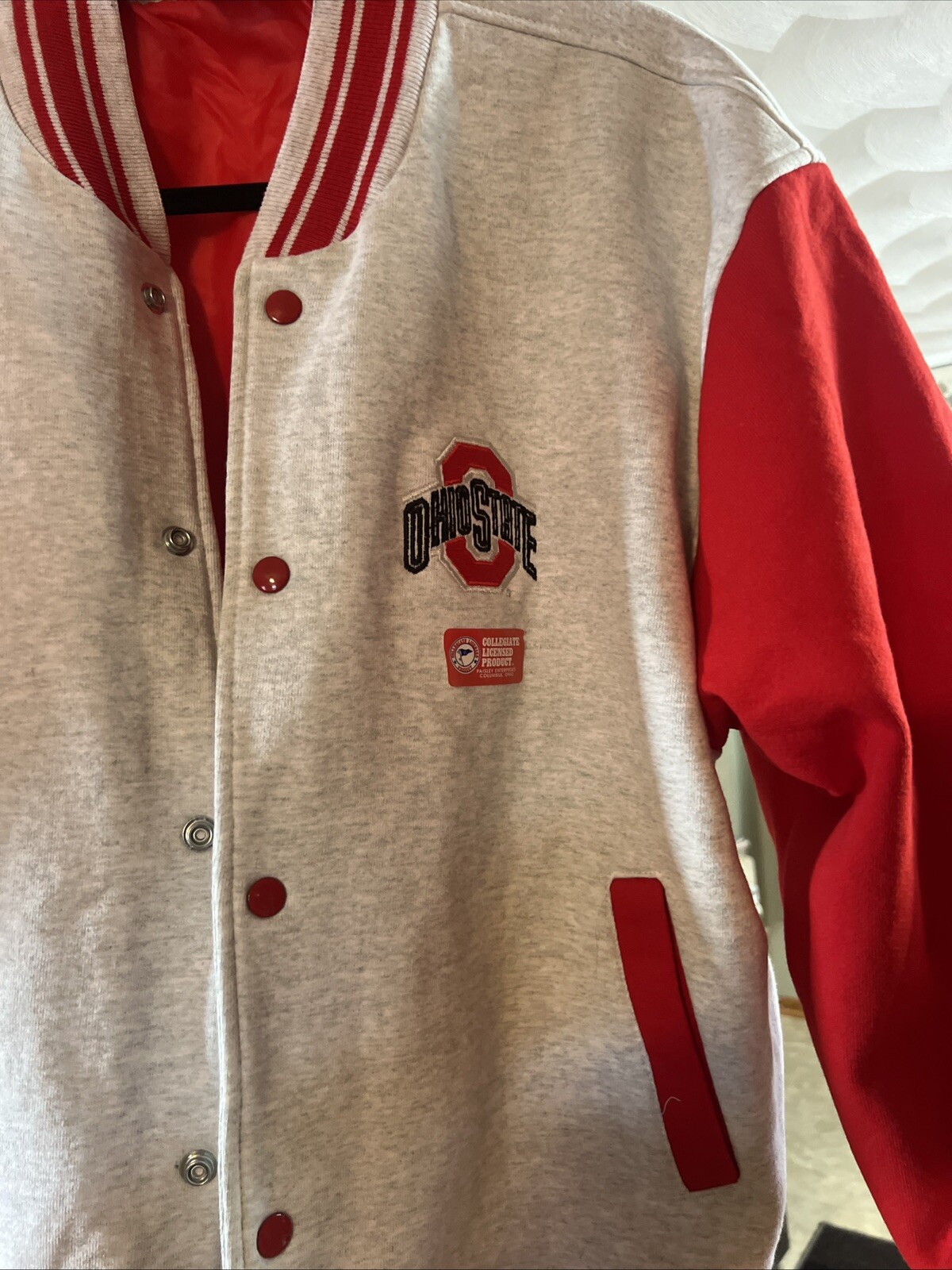Vtg Fruit of the Loom Ohio State Buckeyes Varsity Jacket Mens Xl Gray Red Logo. Condition is New. Shipped with USPS Ground Advantage. The sticker in front is gone