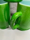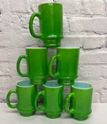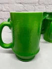 Good vintage condition. No chips, cracks or breaks. There is some slight color wear. One handle has a small are where the green color is worn off. The glass is heavy and textured. Approximately 4.75”x 2.75” and 10oz. Please see photos for condition. Thanks for looking.