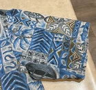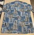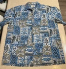 This vintage Hawaiian shirt from the 1990s features a blue floral hibiscus pattern, showcasing a classic Aloha theme. Made in the United States by the brand "Ho Aloha Original," this men's shirt is crafted from lightweight woven cotton fabric, making it breathable and suitable for all seasons. The relaxed fit and collared, button-up design with short sleeves make it perfect for casual occasions like parties or cocktails, embodying a classic Hawaiian style with a touch of nostalgia. This shirt is in good preowned condition with little sign of wear. Please see ALL photos for a better idea on condition, any measurements, or details to the shirt.