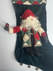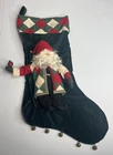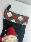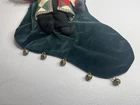 Vtg House Of Hatten Christmas Stocking 3D Santa Apple Bells Velvet Green