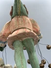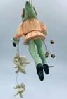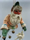 Not sure if this an offbeat Santa or a gnome/elf Either way, he’s cool. This vintage House Of Hatten Santa Christmas ornament is handmade: painted wood with birds and bells. In typical Hatten style, the mix of materials is amazing and one of a kind. Condition is very good. See photos. You can rewire the birds if you want a longer or shorter ornament. Approx 10 inches tall.