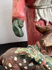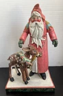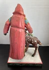 This is a vintage House of Hatten Folk Art figure of Santa with a baby reindeer, designed by Denise Calla in1988. It is a large, hand-painted wood-like resin figurine featuring intricate carvings of Santa with his baby reindeer. The Santa figure is part of the "enchanted forest" collection. This unique piece embodies a festive Christmas theme and is a charming addition to holiday decor. Excellent condition. Please see my other House of Hatten Santas as well.
