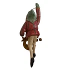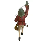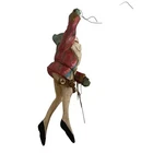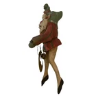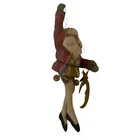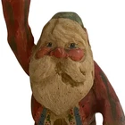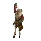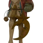 Add a unique touch to your festive décor with this charming vintage Santa ornament. Hand-painted with intricate details, it features Santa holding a crescent moon and bell, symbolizing holiday cheer. This collectible piece adds a nostalgic and whimsical flair to your Christmas tree or home. • Hand-painted with care • Vintage design • Includes crescent moon & bell • Durable wood construction • 7 inches tall Paint is chipped in various areas, adding to its vintage charm. Top to bottom = 7 inches.