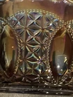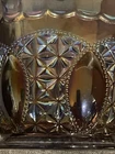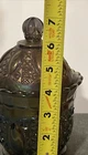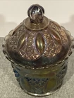 This vintage Imperial Glass candy dish is a stunning addition to any collection. The oval shape and multicolor design make it a beautiful decorative piece. The dish measures 4.75 inches in diameter and 7.25 inches in height, with a depth of 3.5 inches and width of 4.75 inches. It features a lid and is made of carnival glass, which adds to its unique beauty. Care instructions are included and the dish should be hand washed only. This item is perfect for those who love vintage glassware and want to add a touch of elegance to their home decor. This item is in great condition. No chips. No cracks. Please refer to the pictures for the best details of the exact item you are receiving. Photos are NOT stock photos!